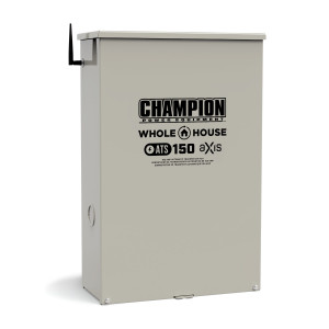 The 14kW Champion Power Equipment 100836 aXis Home Standby Generator with 150 Amp Whole House Service Entrance Rated NEMA 3R Automatic Transfer Switch and Prioritized Power Management restores full power to your home during blackouts and power outages.