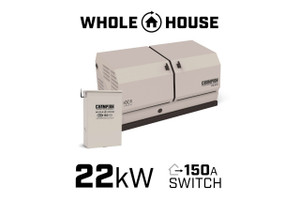 The Champion 22kW whole house generator with 150-Amp Automatic Transfer Switch automatically restores power to your home seconds after an outage hits. For a few hours, a few days, or even weeks, the Champion 22kW keeps your entire home up and running with all the important essentials and conveniences.