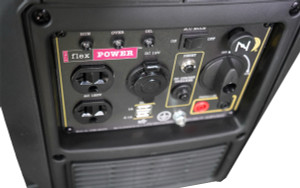 Built with the outdoor enthusiast in mind, the Flex Power 2200i generator front panel includes a two 120-Volt, 5-20R receptacles. USB ports (2) supply 5-Volts DC at 2.1A and 1.0A respectively while a 12-Volt DC Outlet provides up to 8.3 Amps of power. Indicator lamps for Running, Overload, and Low Oil conditions. Parallel ports connect via a *parallel kit with a second inverter *generator for additional power
