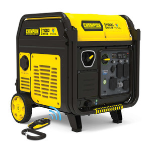 This super-quiet 11000 Watt Champion Tri-Fuel Generator brings power to fifth-wheel and travel-trailer RVs, tailgate parties, events, and home backup. At 64 dBA—Barely louder than conversation—it won't disturb you or your neighbors at home or at the RV campground. The Champion 11000 Watt Generator runs up to 15 hours on a 6.01-gallon tank of gasoline and 8 hours on a 20-pound propane tank**. Extended run times on Natural Gas. Remote Start makes getting up and running a breeze.
