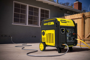 The Champion Generator Owner Manual explicitly states that the generator is only for use outdoors. Keep the generator at least 20-feet away from any windows, doors, vents, or other openings with the exhaust pointed away from buildings and preferably downwind.