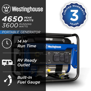 3-Year Warranty - All Westinghouse Portable Generators come with a 3-Year Residential Warranty and Lifetime Technical Support.